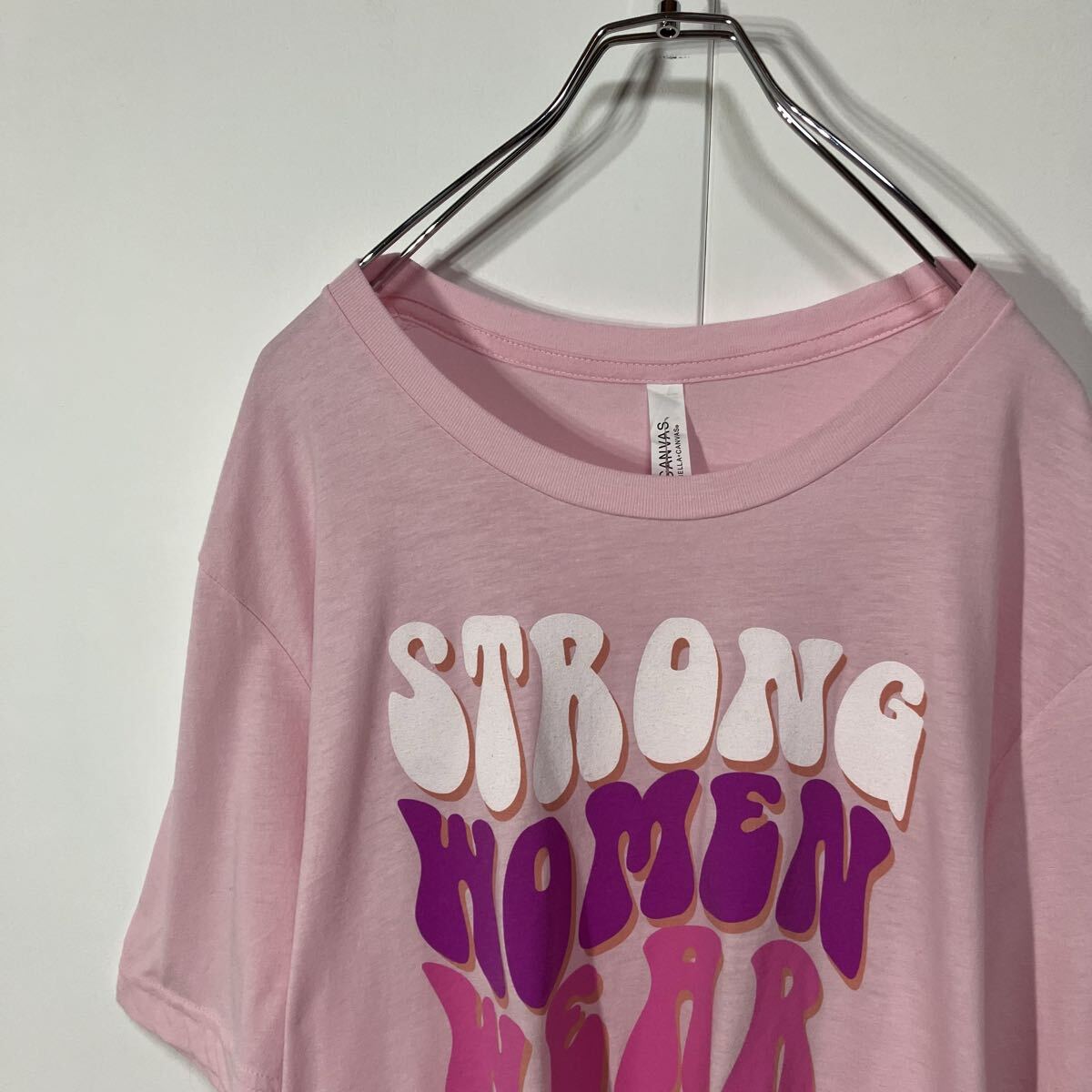 - 古着 片面 プリント クルーネック 半袖 Tシャツ 大きいサイズ ピンク XL