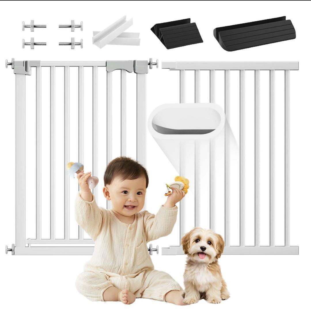 - ベビーゲート ペットゲート ドア付き ダブルロック 高76cm幅69〜76