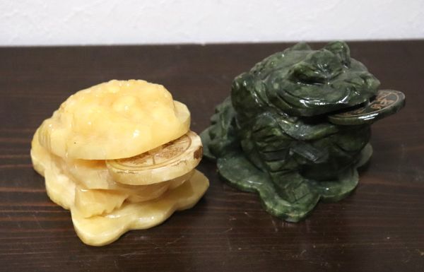 - 中国 砡製の銭蛙 置物 二点 縁起物 n825