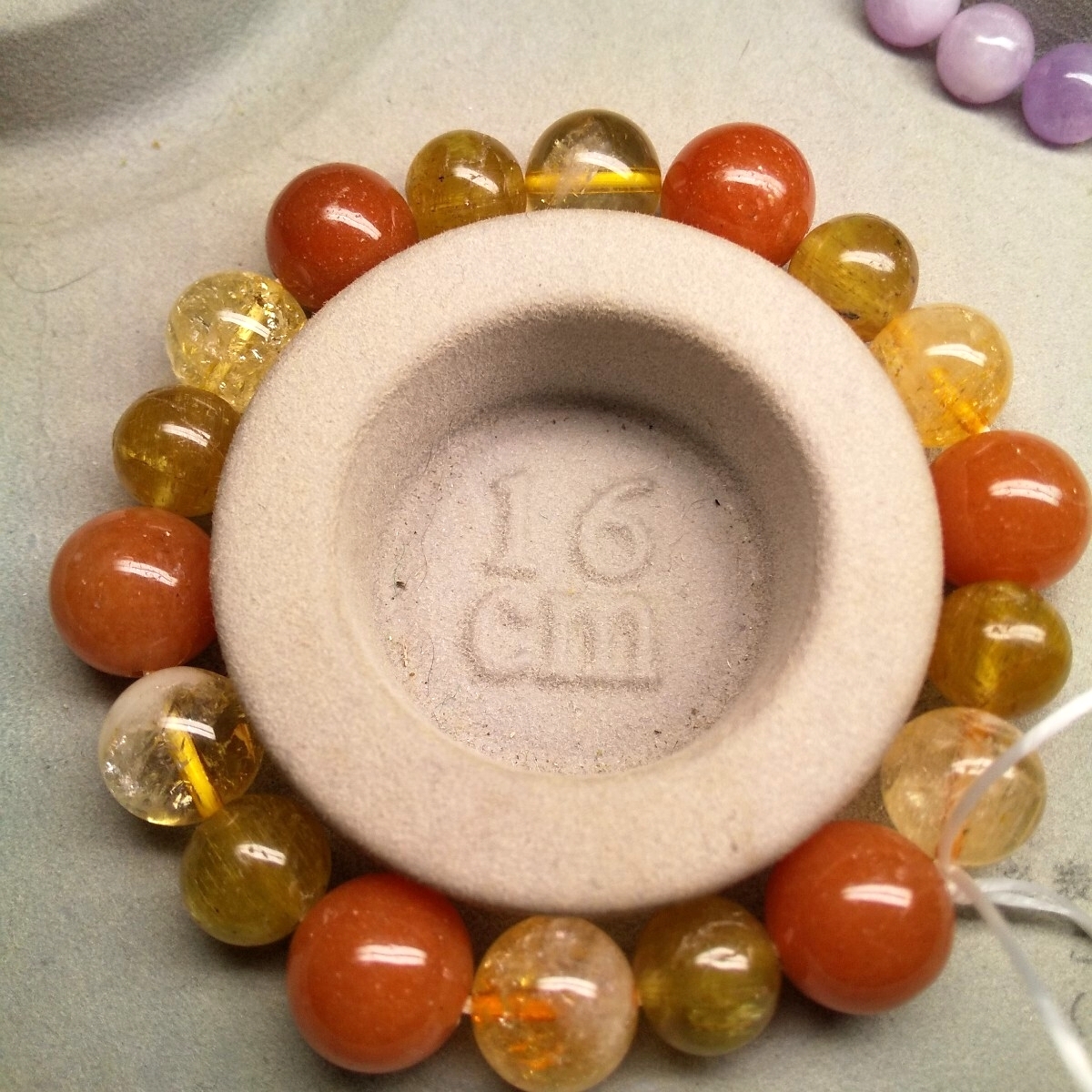 - 天然石 オレンジアベンチュリン 12㎜玉+虹入りシトリン11㎜玉+キャッツアイシトリン10㎜玉 内径約16㎝【繁栄 富 調和 自成功】ブリコラ屋