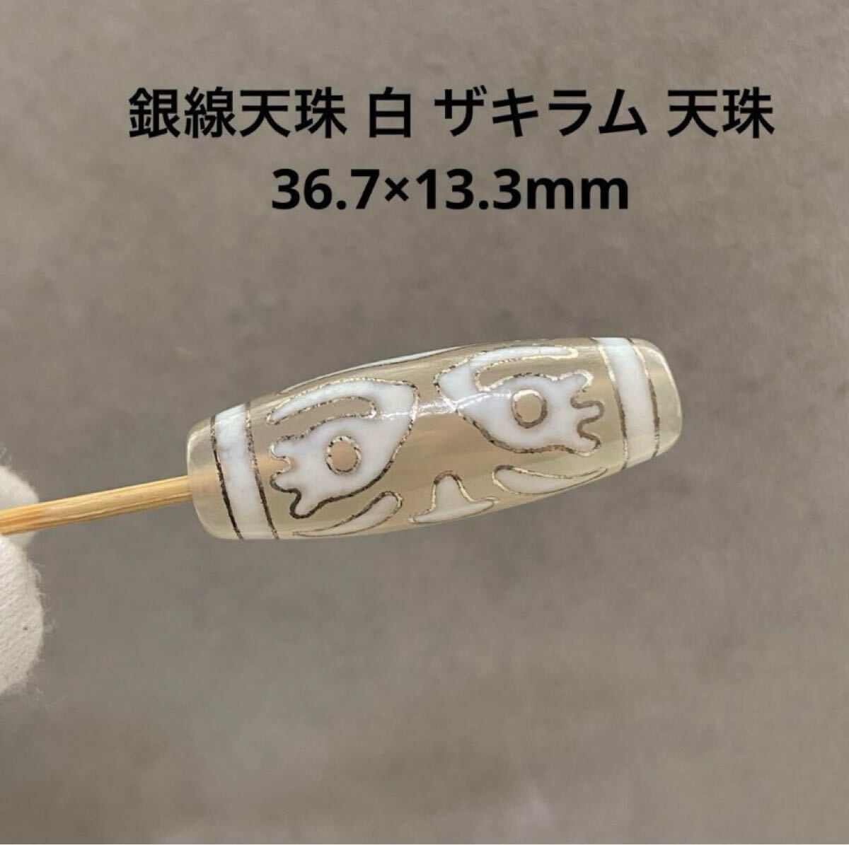 - D880 銀線天珠 白 ザキラム 天珠 36.7×13.3mm