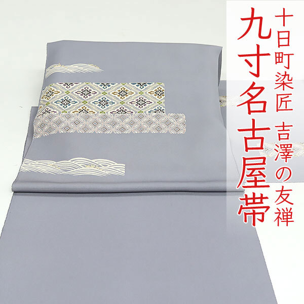 > 和遊館 即決ona4463 十日町染匠 吉澤の友禅 塩瀬 九寸 名古屋帯 藤鼠色 お仕立て付き