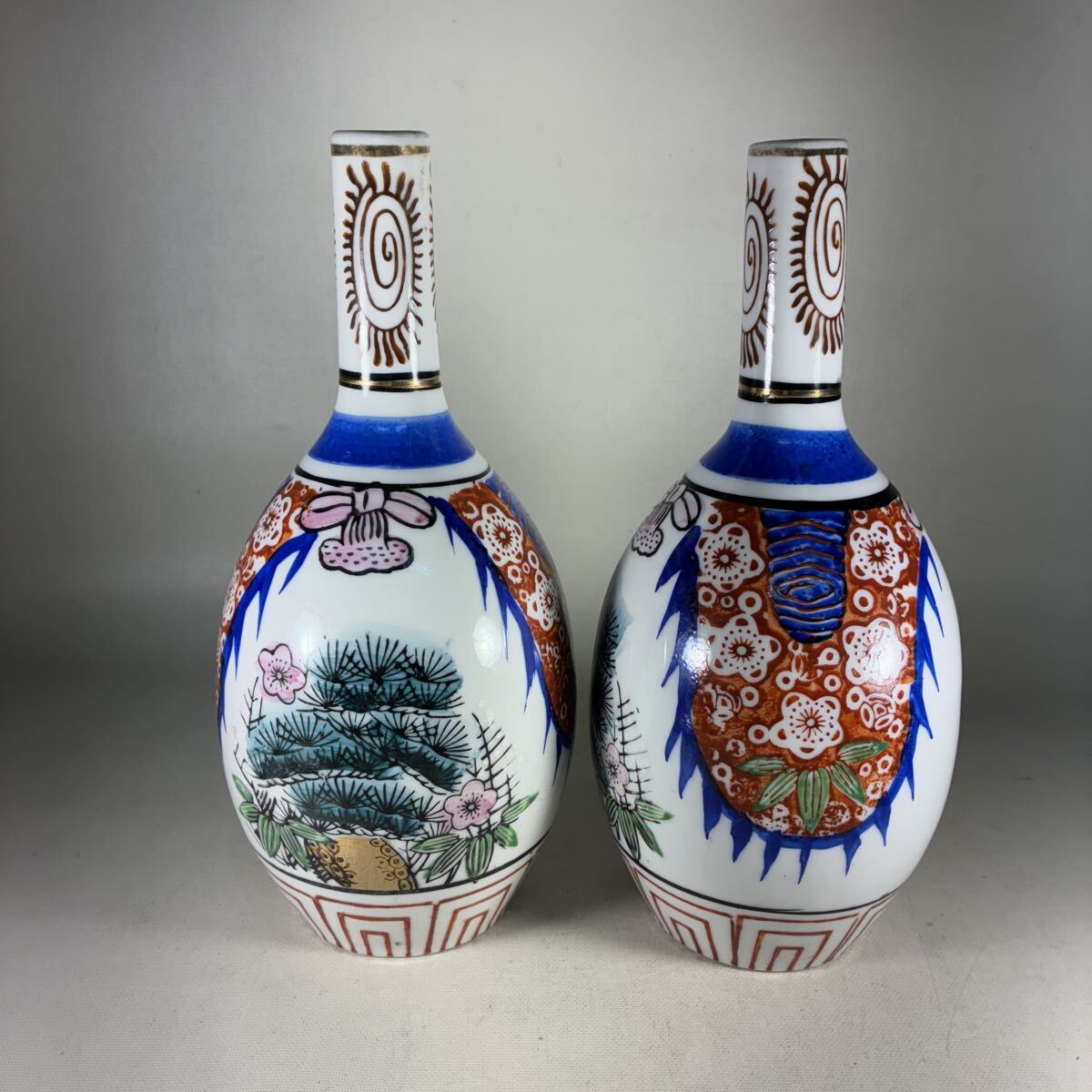 - 玉神酒 徳利 酒器 神器 花瓶 花生 色絵 陶器 2客 24cm