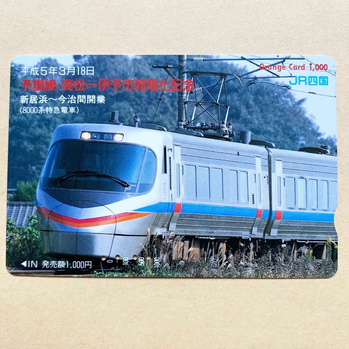 > 【使用済】 オレンジカード JR四国 平成5年3月18日 予讃線・高松〜伊予市間電化記念 新居浜〜今治間開業 (8000系特急電車)