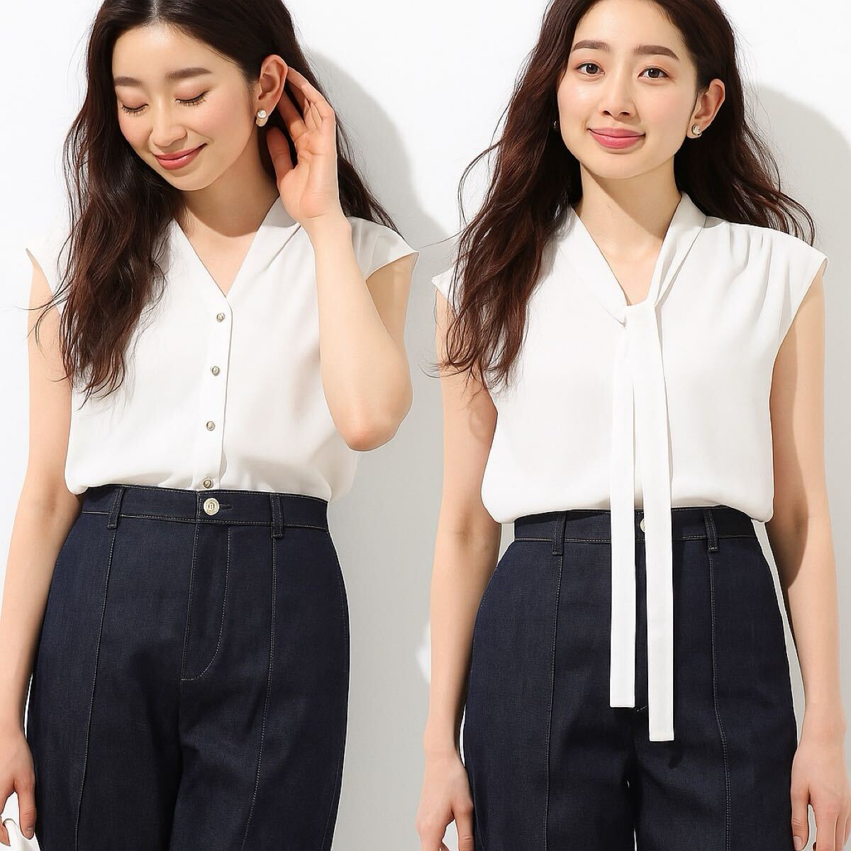- ROPE' 3wayボウタイブラウス ロペ 金ボタン ゴールドボタン Vネック ロペ リボンシャツ リボンブラウス 取り外し可能 シャツブラウス M 白