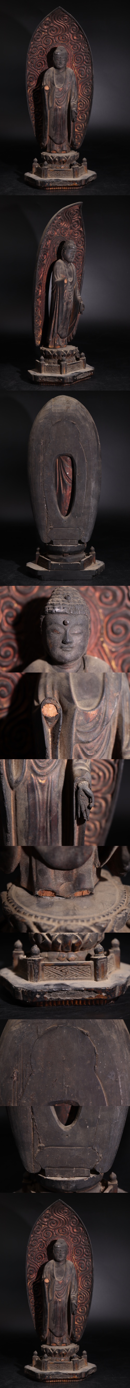 - 時代 木製 金彩 阿弥陀如来像 / 仏教美術 仏像 木地 木工芸 置物 煎茶飾 検索: 中国 李朝 .G2358