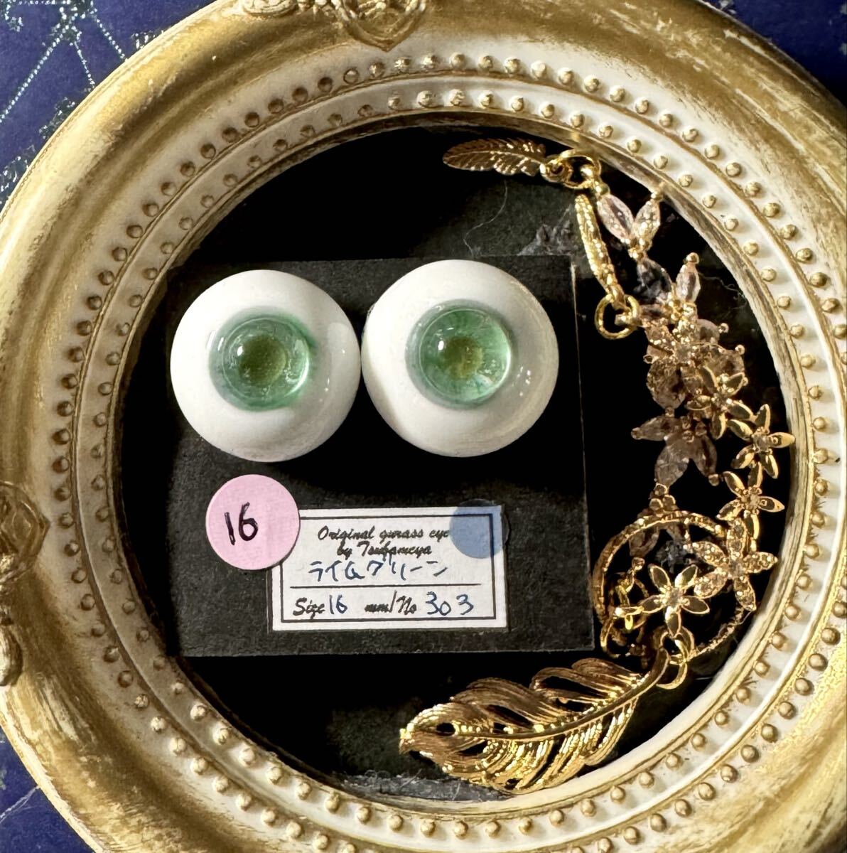 - 16㎜ ツバメ屋 グラスアイ no_303 ライムグリーン ドール doll SD 16ミリ