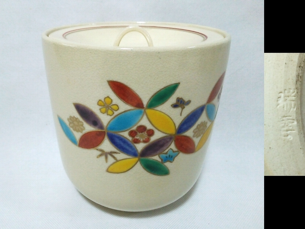- ★【一美堂】★茶道具★前田瑞雲作★色とりどりの七宝色絵★『水指』★