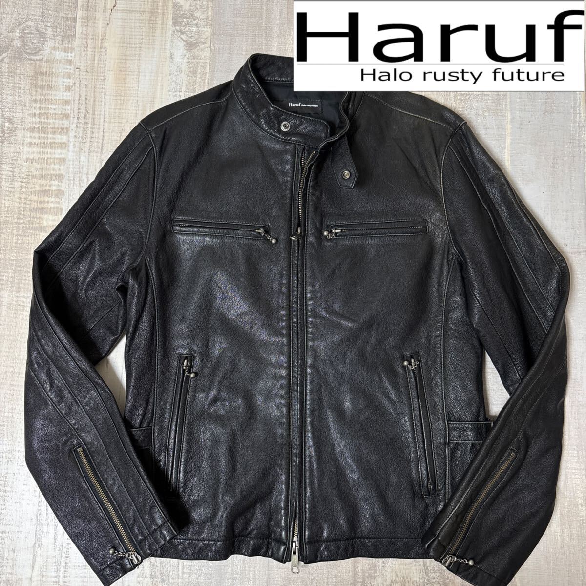 > 【羊革】Haruf ラム レザー シングル ライダース ジャケット ハルフ ブラック 黒 サイズM ダブルジッパー 本革 メンズ ヴィンテージ