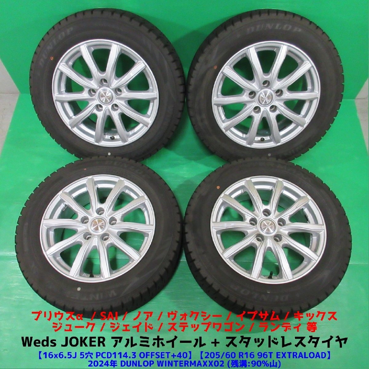 > 90ヴォクシー 205/60R16 2024年バリ山スタッドレス 90-95%山 DUNLOP WINTERMAXX02 4本 5穴PCD114.3 +40 90ノア キックス ジェイド 中古新潟
