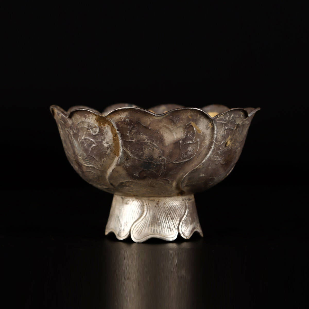 - 8+GV7336「東洋美術」 中国骨董 人間国宝 磁器製品【唐代の純銀製六弁鉢のコレクション】 旧物 孤品 珍品 陶磁器 収蔵価値が高い