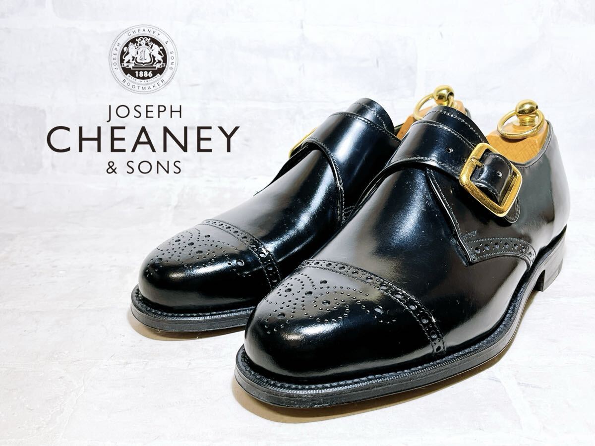 > 英国製【デッドストック】旧CHEANEY 旧チーニー 高級 モンクストラップ セミブローグ ヴィンテージ ビジネス UK6.5(約25cm)メンズ