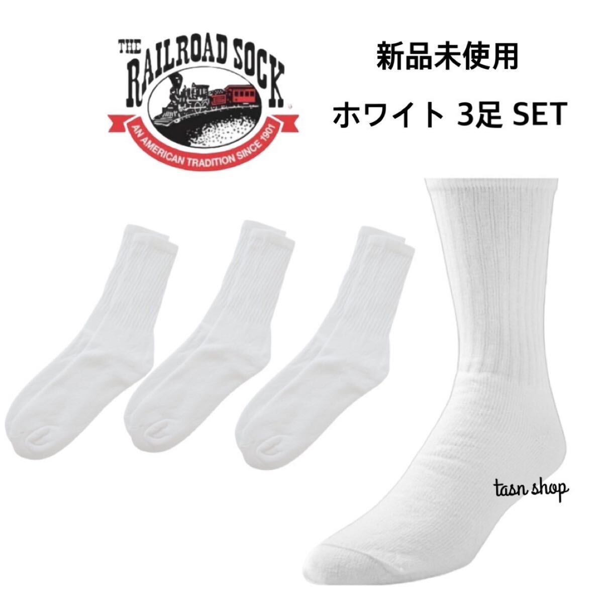 - 【レイルロードソック】新品未使用 クルーソックス 無地 米国製 ホワイト 白 3足セット THE RAILROAD SOCK rs6070 Made in USA