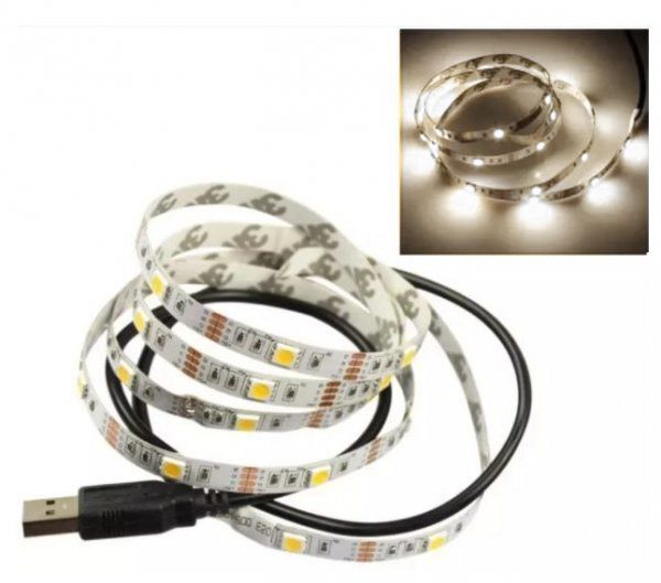 - 送料無料! 高輝度USBテープライト 使い方いろいろアイデア次第! 切断可 裏面テープ USBケーブル付 ホワイト1m LEDテープライト