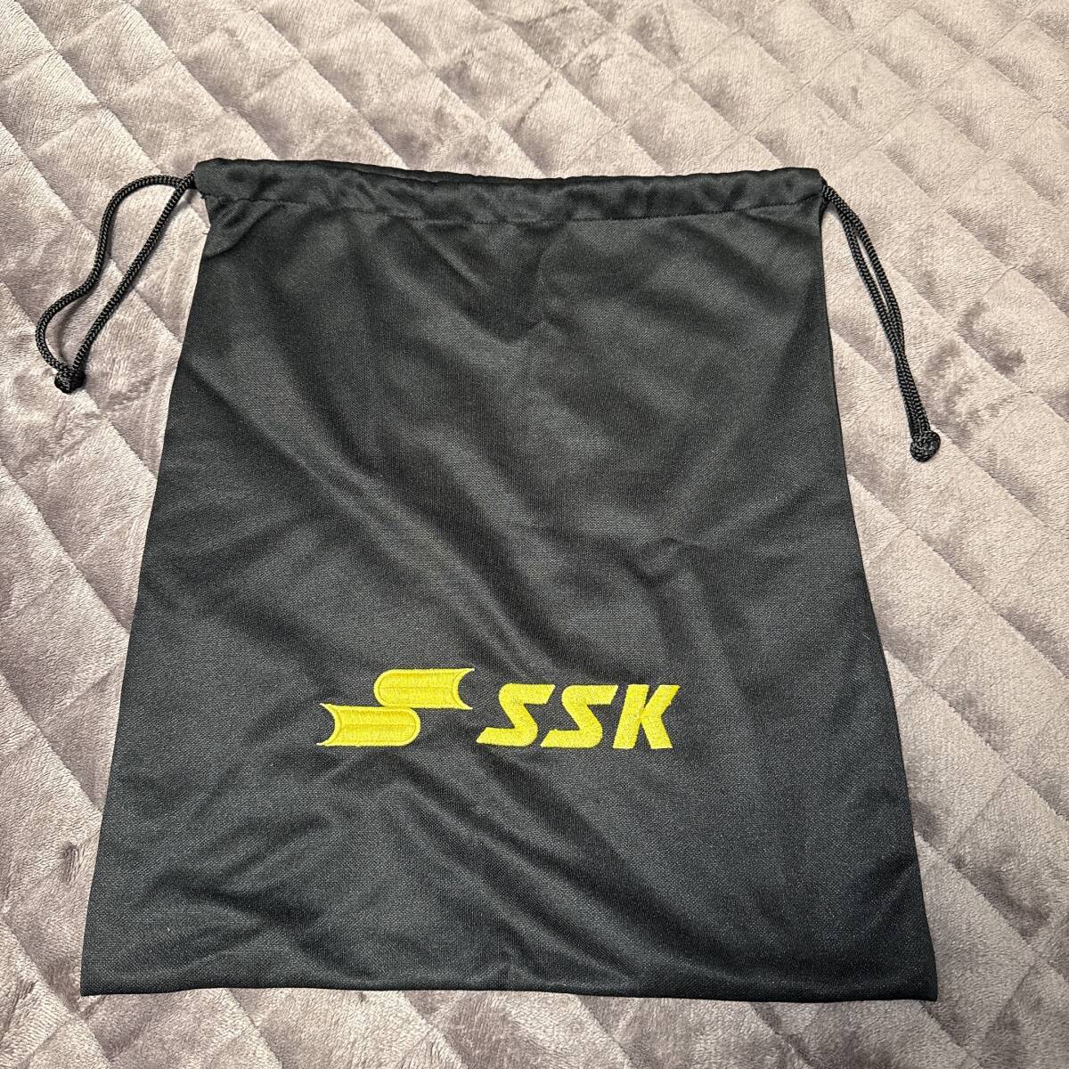 - 【極美品】 SSK エスエスケイ 巾着型バッグ ブラック 刺繍 野球 ベースボール 男前 高校野球 中学野球 少年野球