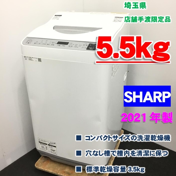 > SHARP シャープ 2021年製 5.5kg 電気洗濯乾燥機 ③ ES-TX5E-S S/N20153 ◎IL14