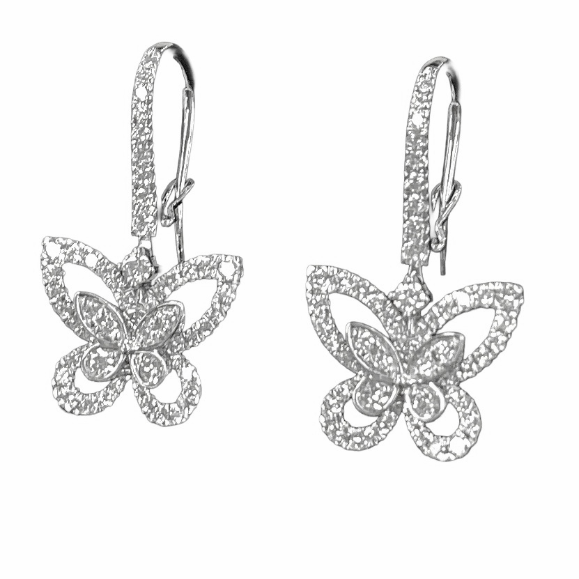 - 送料無料 中古A グラフ ピアス イヤリング GRAFF バタフライシルエット ダイヤモンド ドロップ 0.95ct K18WG 750 ホワイトゴールド 150887