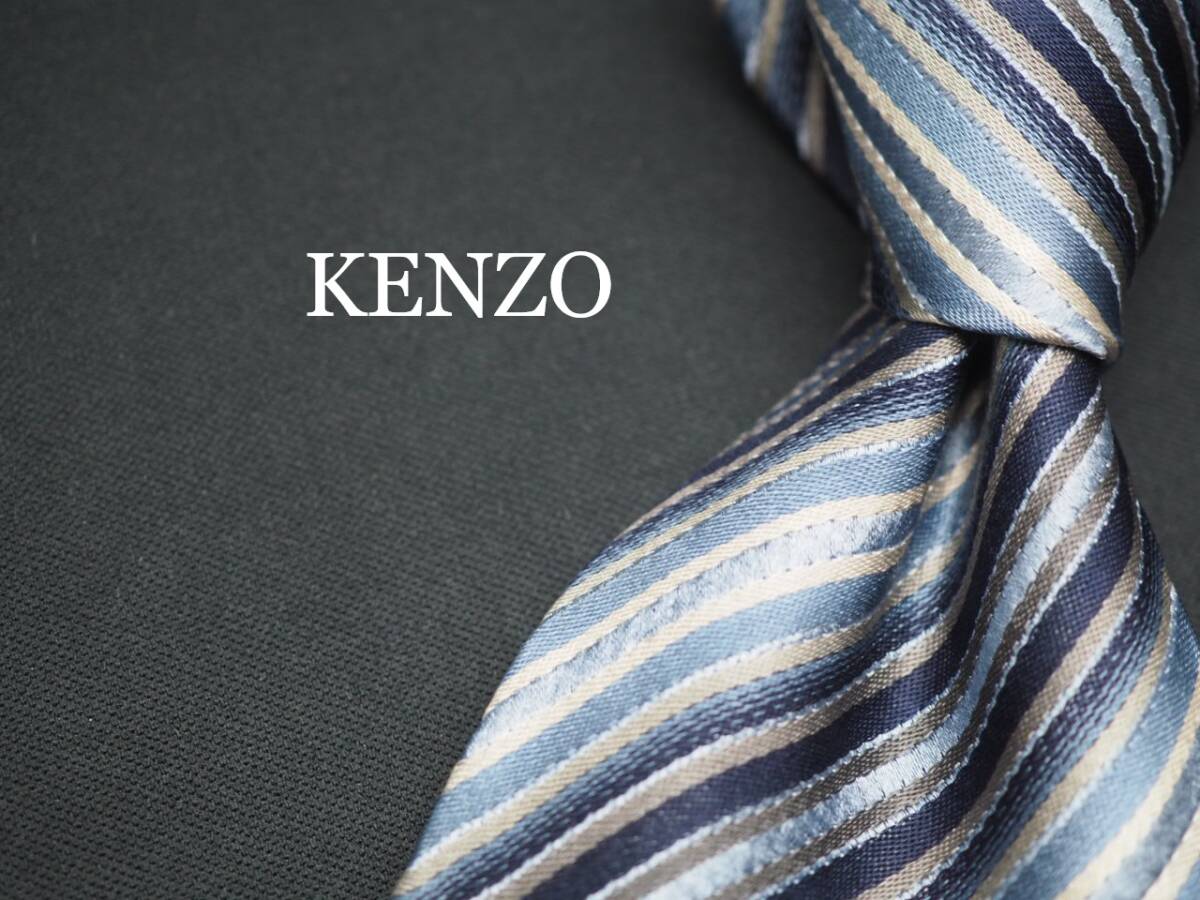 - 美品【KENZO ケンゾー】 F1633 グレー シャンパン ネイビー系 SILK ブランド ネクタイ 古着 良品