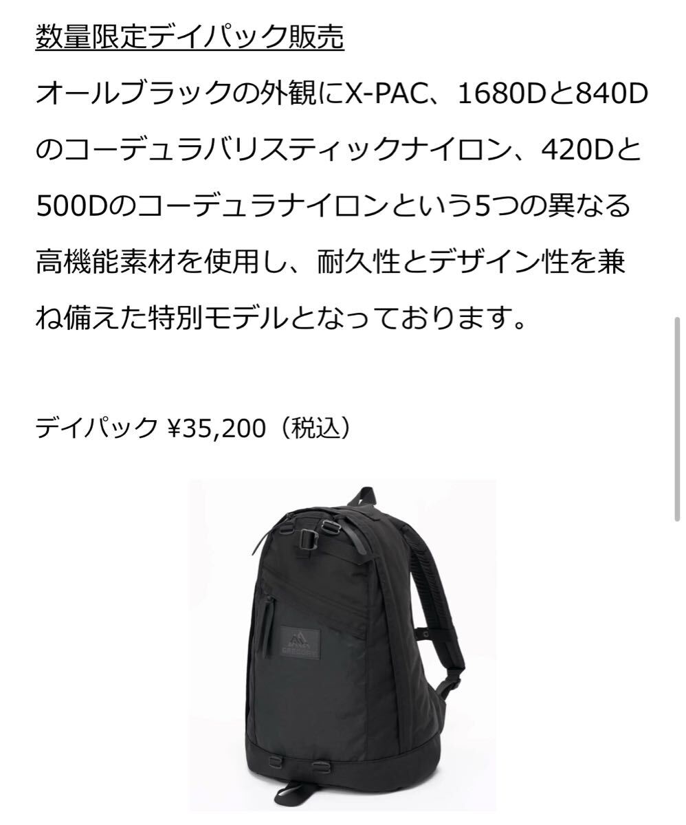 - 数量限定 グレゴリー原宿のオープンを記念 デイパック x-pac