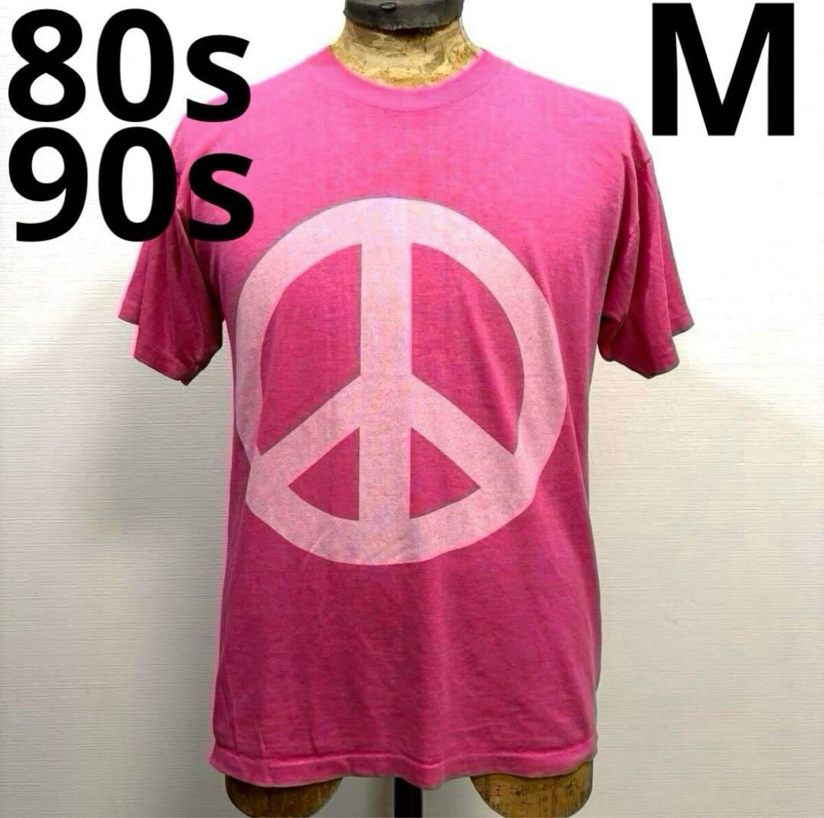 > M 良品 80s 90s USA製 ピースマーク Tシャツ ピンク ビンテージ 平和 PEACE ピースサイン アート アメリカ アメカジ y2k 古着 ヒッピー