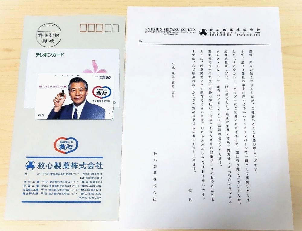 - 【当選通知あり】児玉清 救心 未使用 テレフォンカード 1997(平成9年)すこやかハートクイズ
