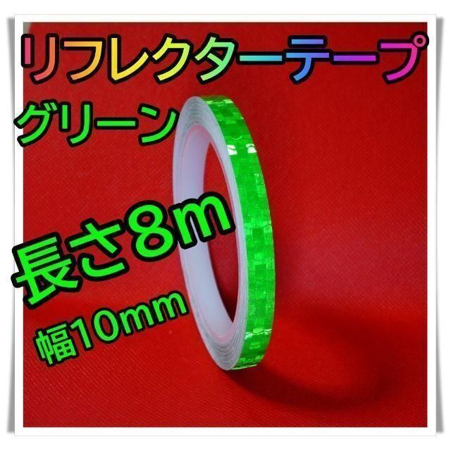 - 反射テープ 【緑】1巻 蛍光テープ リフレクター 新品 10mm×8m