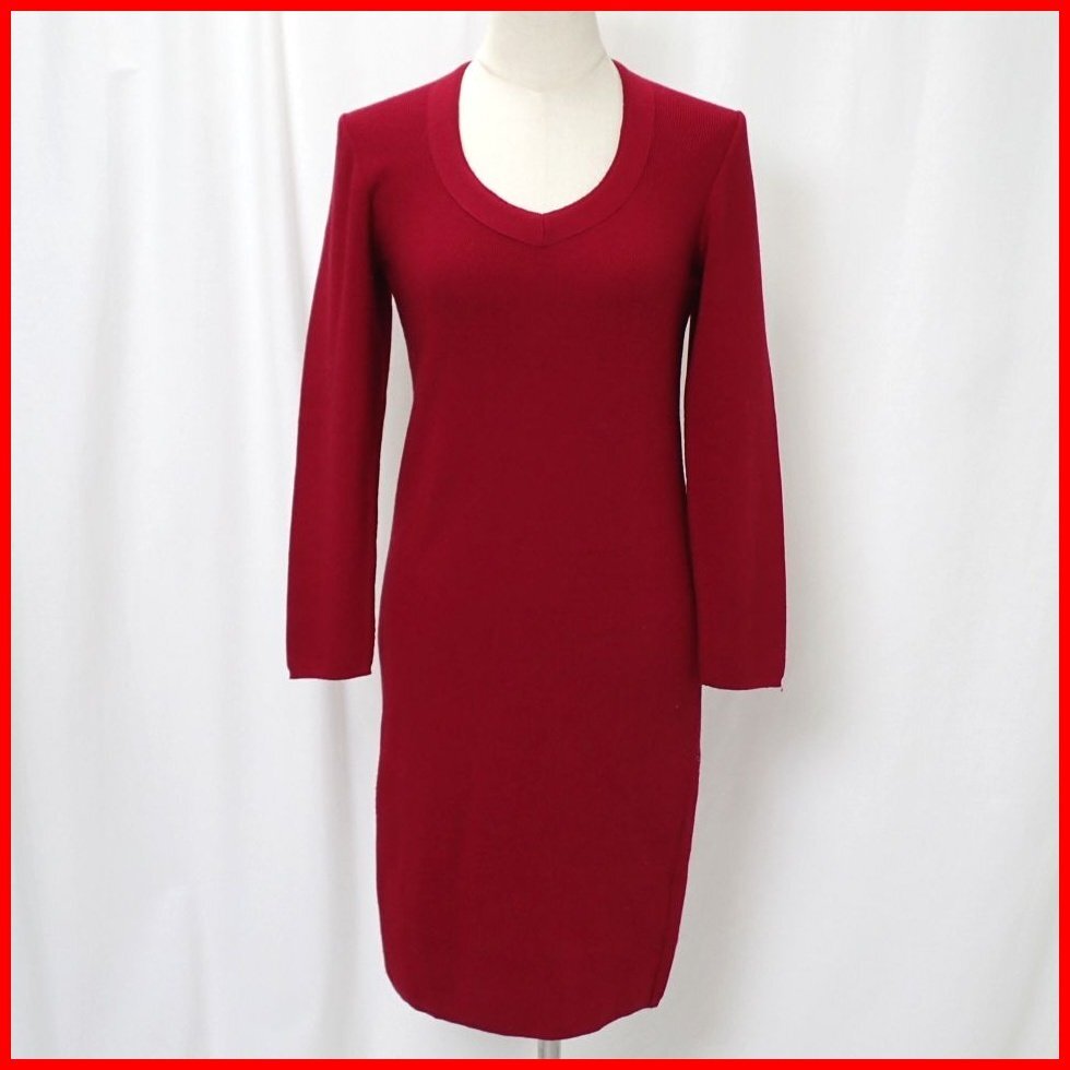 > ★GIVENCHY/ジバンシィ 長袖 ニットワンピース M相当/膝丈/レッド系/ウール100%/フランス製&1375500684