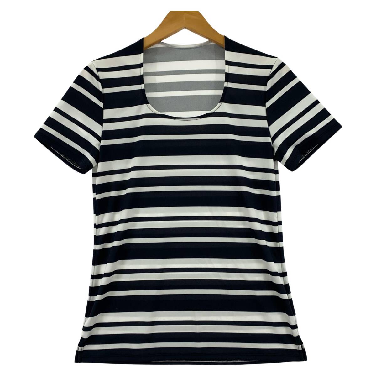 > COUP DE CHANCE クードシャンス ボーダー Uネック 半袖Tシャツ size38/ホワイト×ネイビー ゆうパケットOK