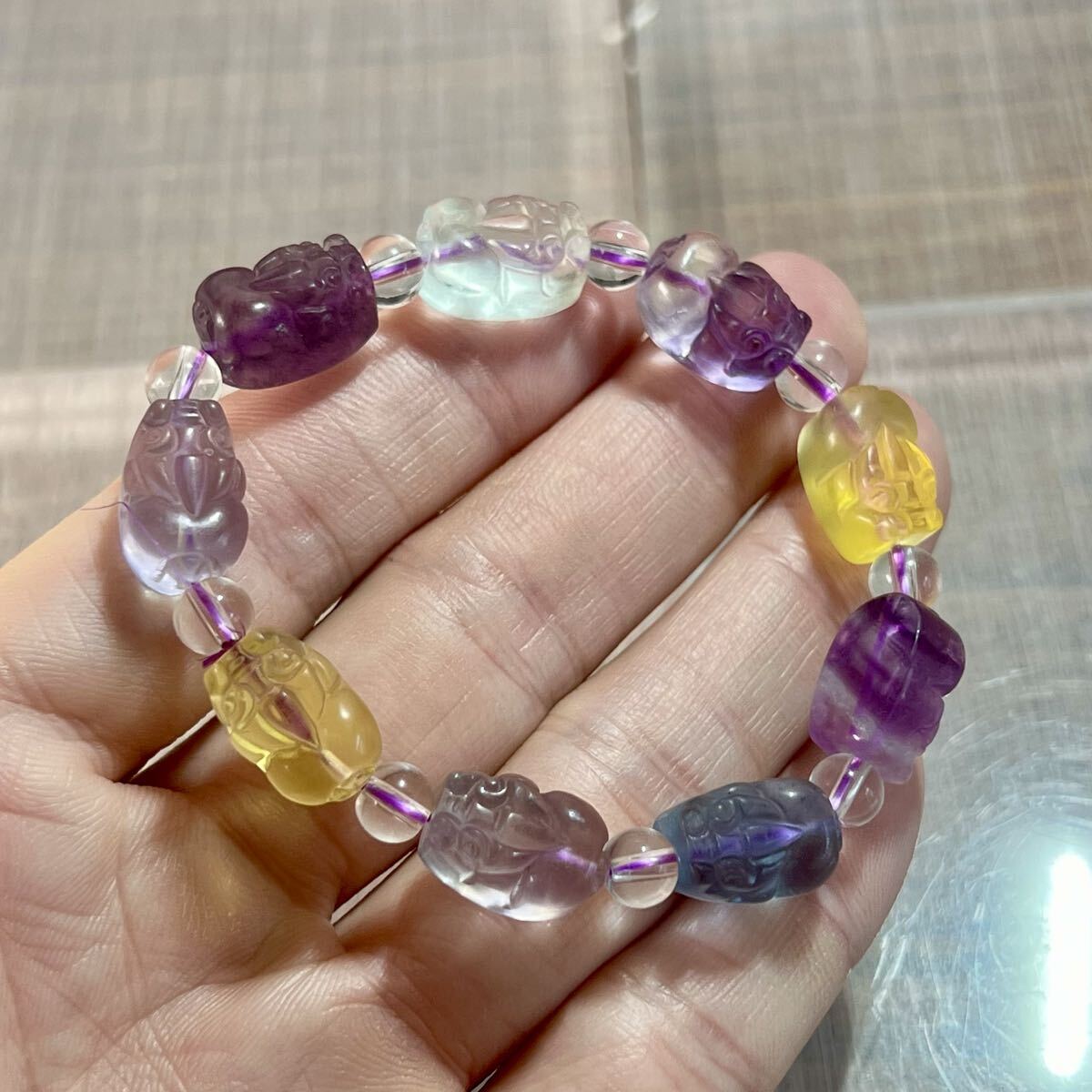 - 高品質 貔貅付きマルチカラーフローライトブレスレット 2-3