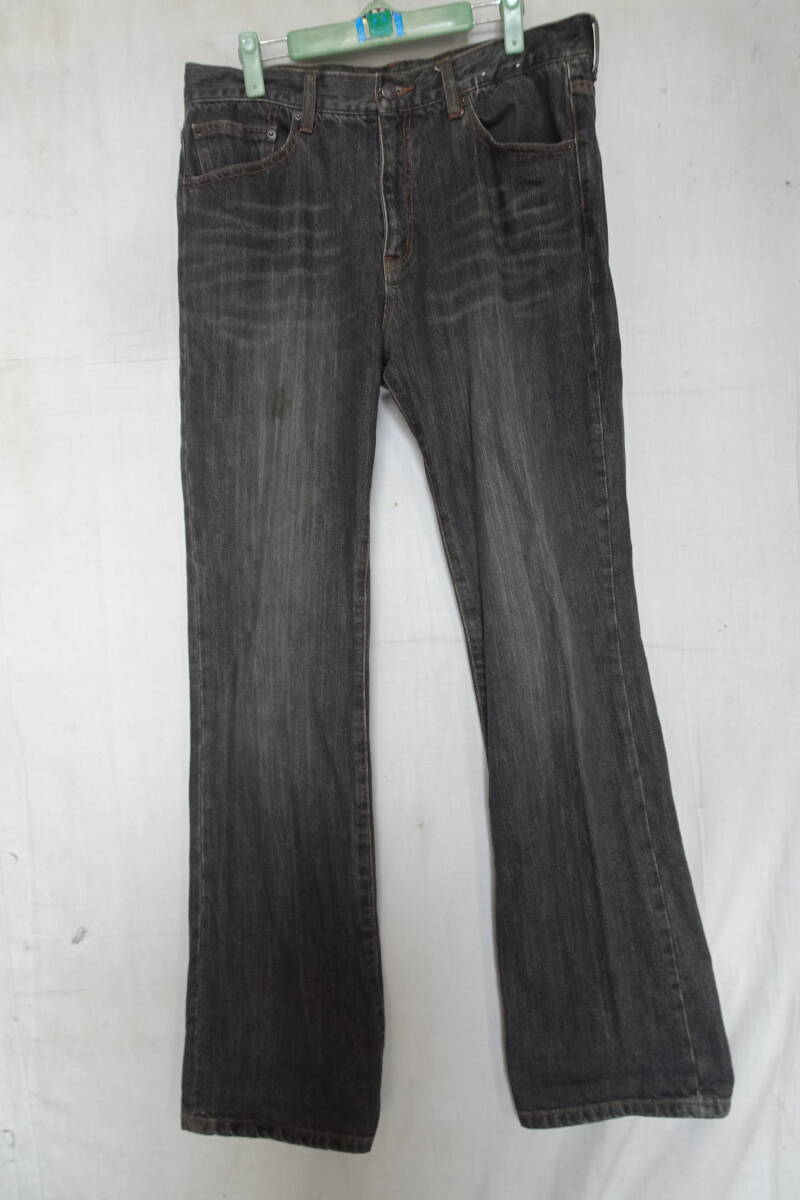 - ジーンズ/デニムパンツ/前ボタン・ファスナー/色落ち加工/ストレートラインシルエット/黒/ブラック/グレー/ウエスト88(8/25R7)