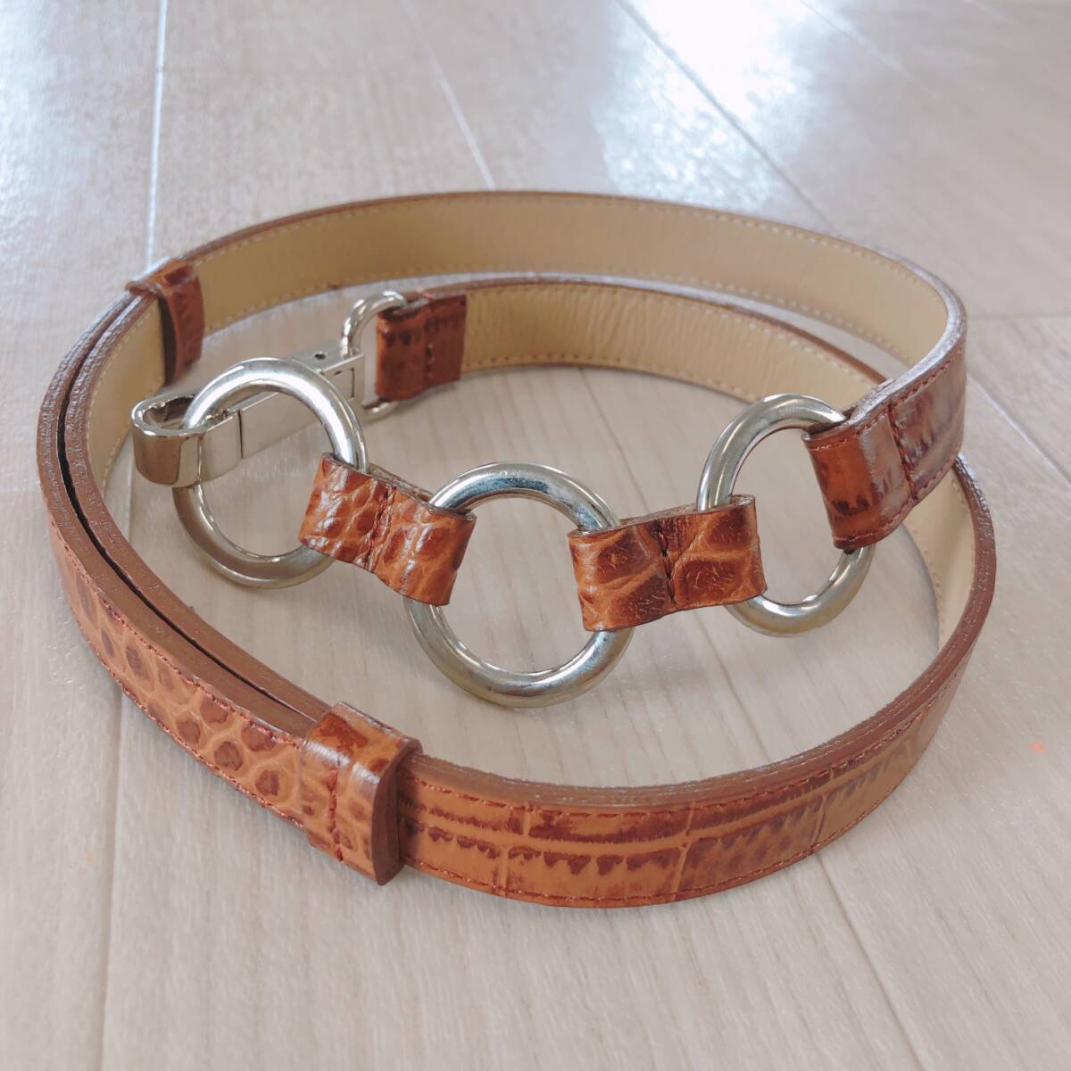 - Y1511 ベルト リング 三連 カラビナ ブラウン 茶 おしゃれ 万能 クール