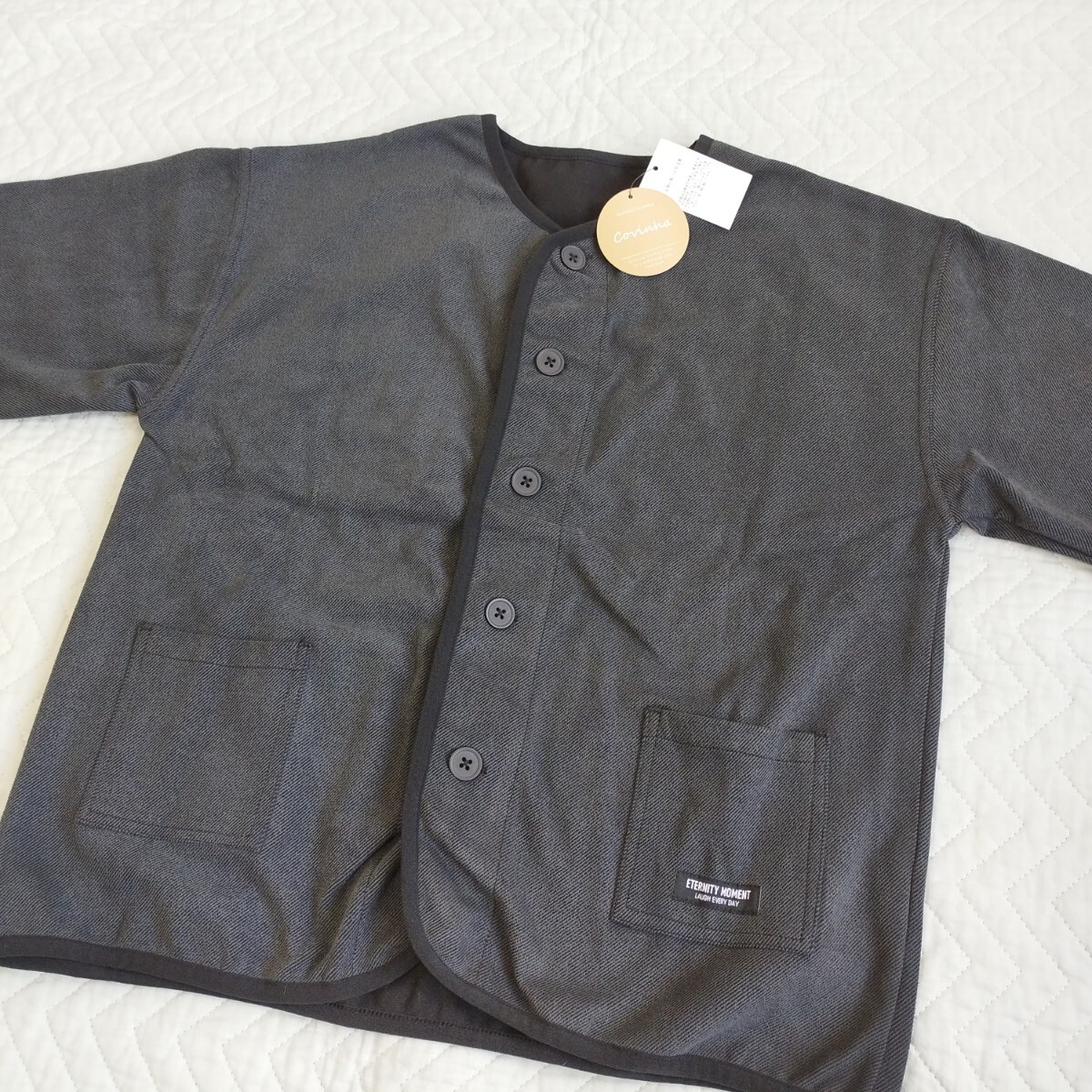- 1点のみ 未使用 暖か 微起毛 ノーカラー ジャケット コート 羽織り ゆったり幅52 洗濯機 ポケット 150 大人も 軽量 中厚 匿名 送料無料