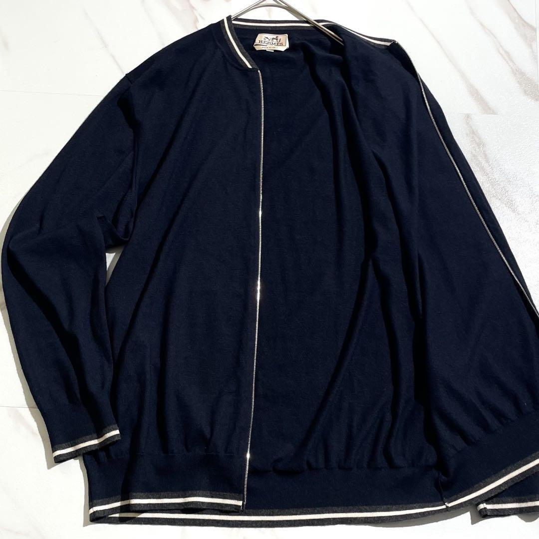 - 【極美品/カシシル/XL】HERMES エルメス カーディガン ネイビー ジップアップ ブルゾン カシミヤ シルク イタリア製