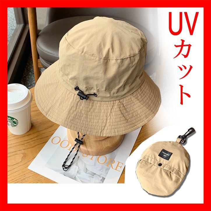 - サファリハット UVカット カーキ 頭囲55~59cm 帽子 撥水 防水 ぼうし バケットハット メンズレディース