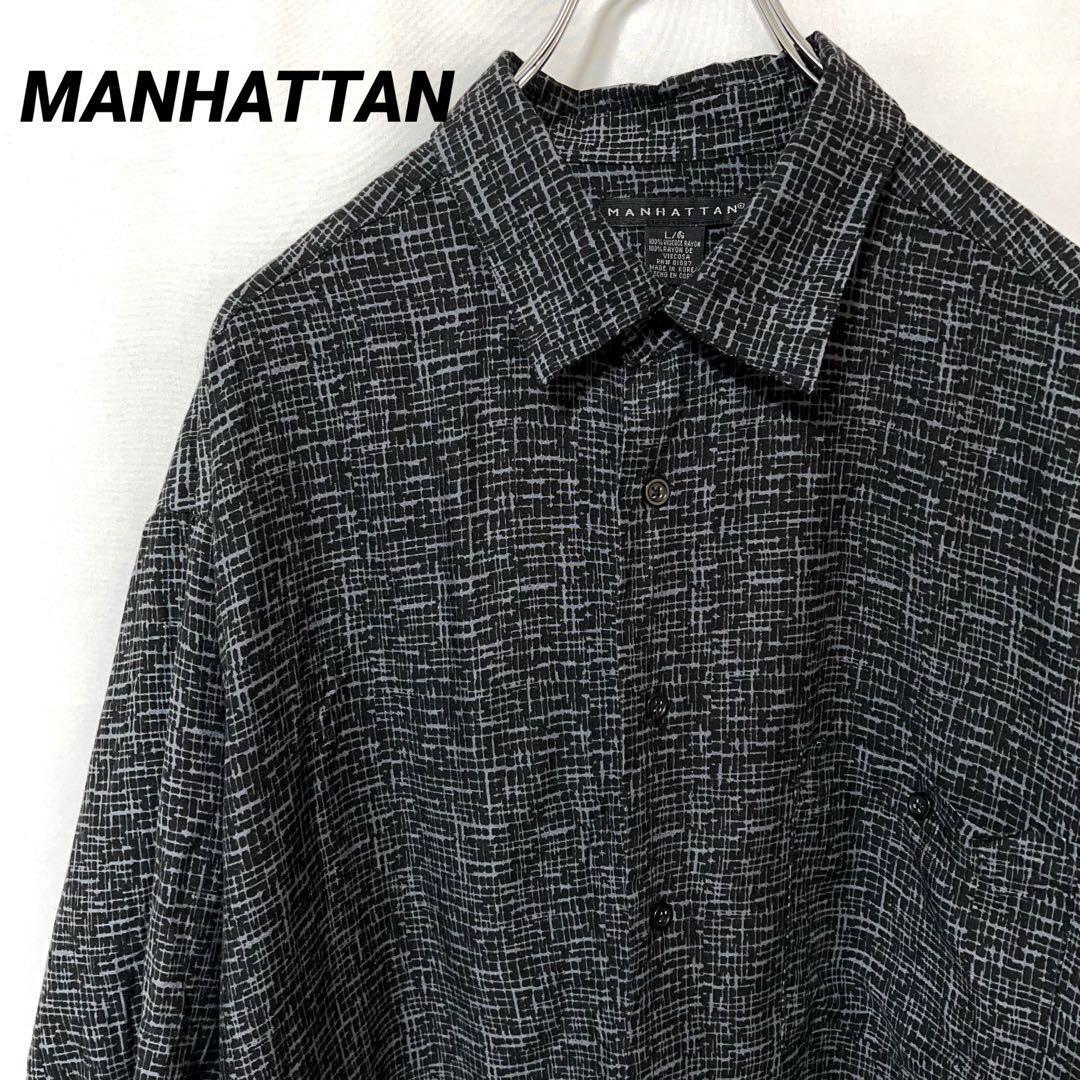 - N-5554 MANHATTAN マンハッタン アメリカ古着 アロハシャツ ハワイアンシャツ トロピカル リーフ柄 レーヨン 半袖 L メンズ
