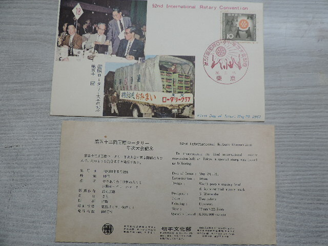 - ★第52回 国際ロータリー大会記念★ 初日カバー 昭和36年5月29日・東京 10円切手 切手文化部発行