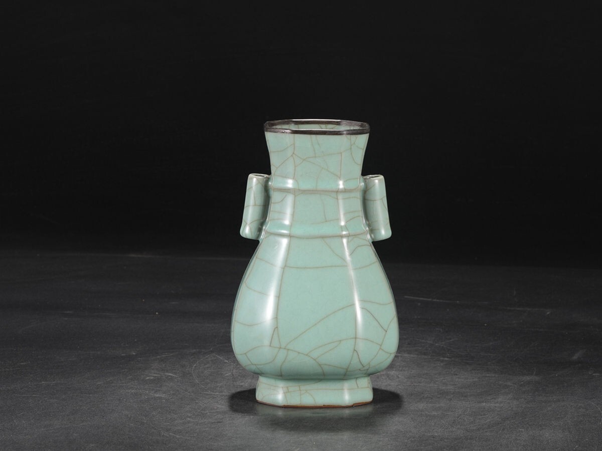 - 「宋 官窯 陶磁器 青釉銀口宮廷御用 八方貫耳瓶」染付 置物 擺件 古賞物 中国古美術 旧蔵出
