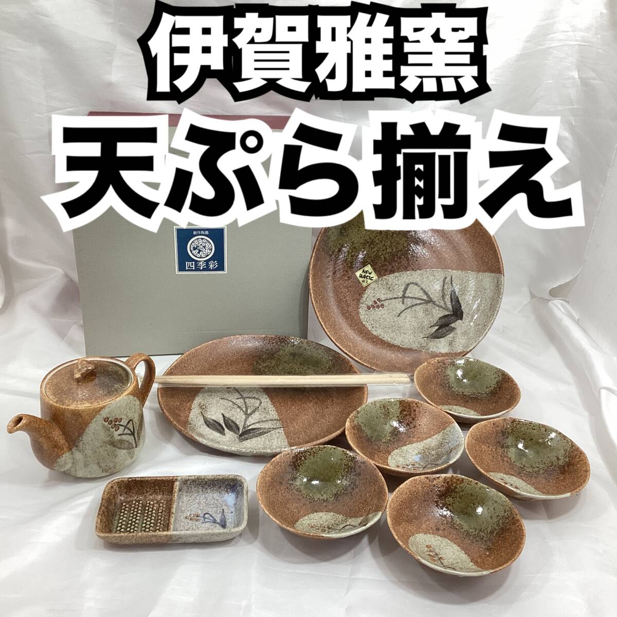 > 【未使用・保管品】伊賀雅窯 すすき 天ぷら揃え 中皿 2枚 銘々鉢 5客 天つゆ入れ 薬味皿 菜箸 陶器製 創作陶器四季彩 手描き風【H1805】