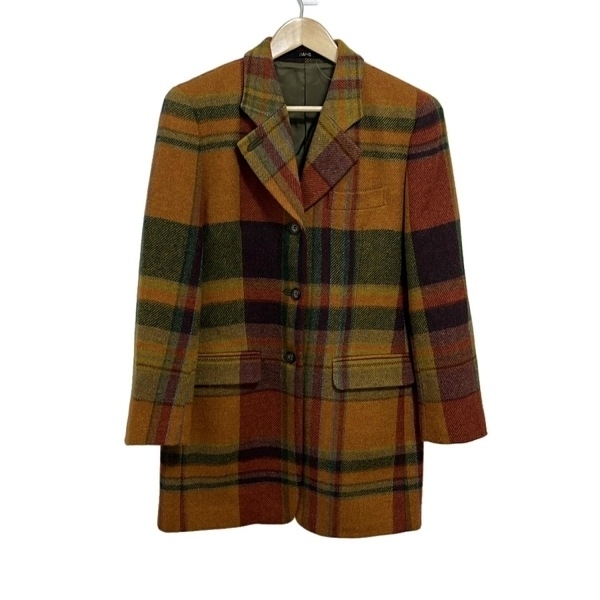 > ダックス DAKS - オレンジ×グリーン×マルチ レディース 長袖/チェック柄/ロング丈/秋/春 美品 コート