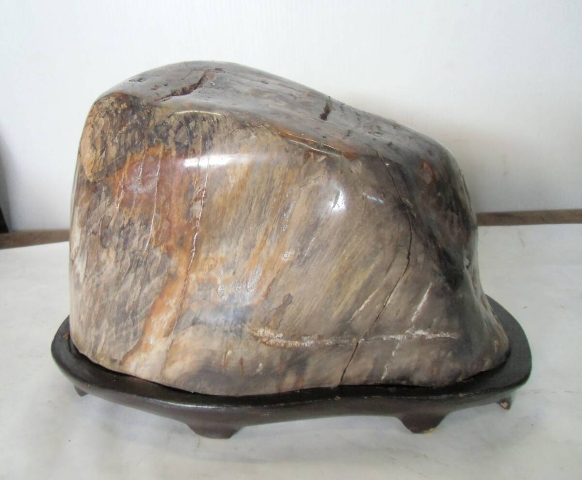 - ■ け-10 置石 時代物 台座付 盆石 オブジェ 鑑賞石 ※約寸:高15cm 幅27cm 奥13cm 重さ6.4kg