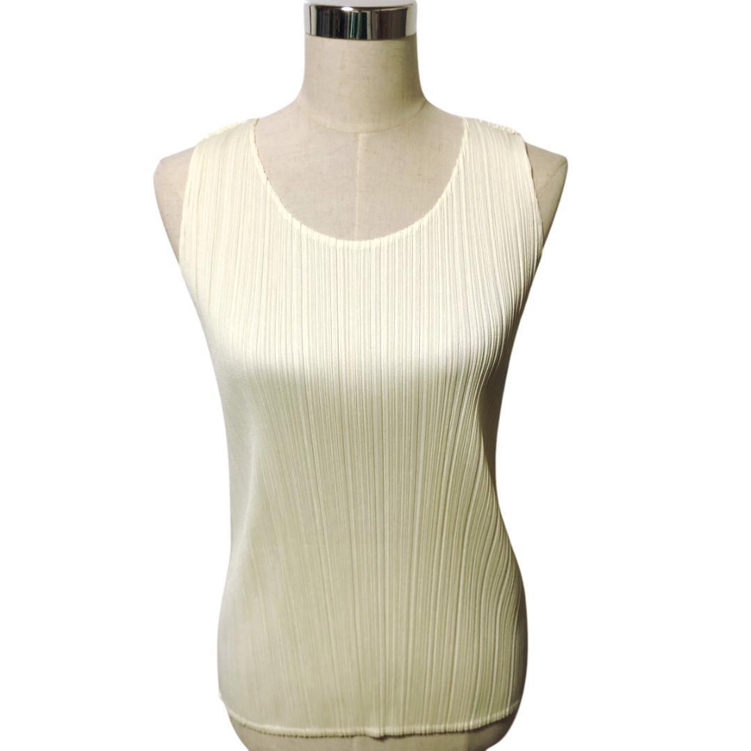 - PLEATS PLEASE プリーツプリーズ プリーツ カットソー ノースリーブ 3 ライトイエロー 日本製 イッセイミヤケ レディース M6
