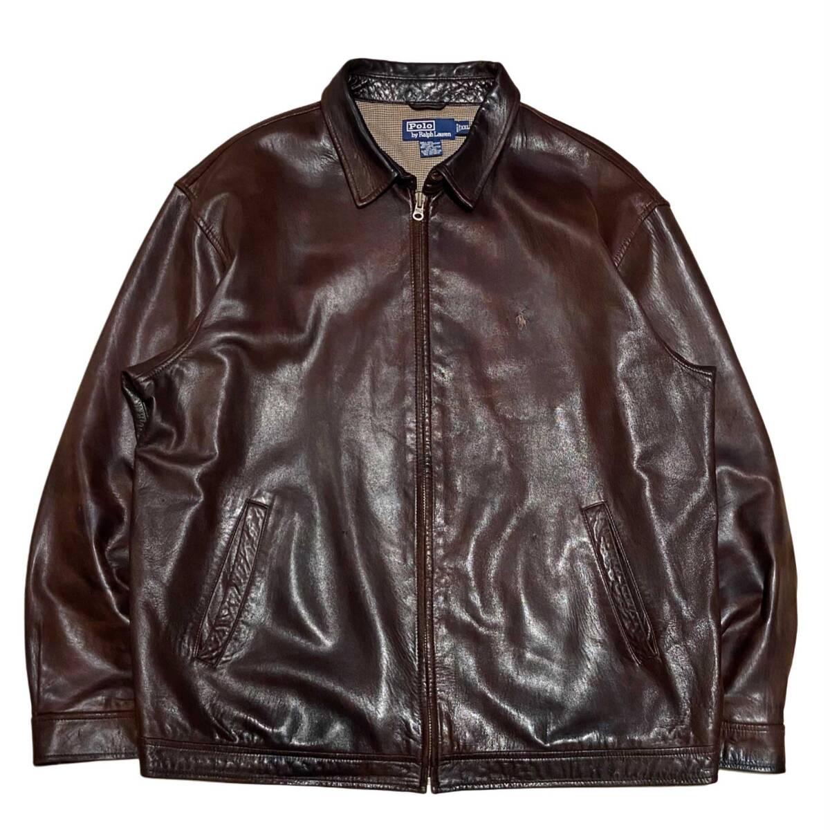 > 希少【オールド 90s Polo Ralph Lauren ポロラルフローレン ラムスキン レザー スウィングトップ ジャケット ブラウン XXL】アメリカ