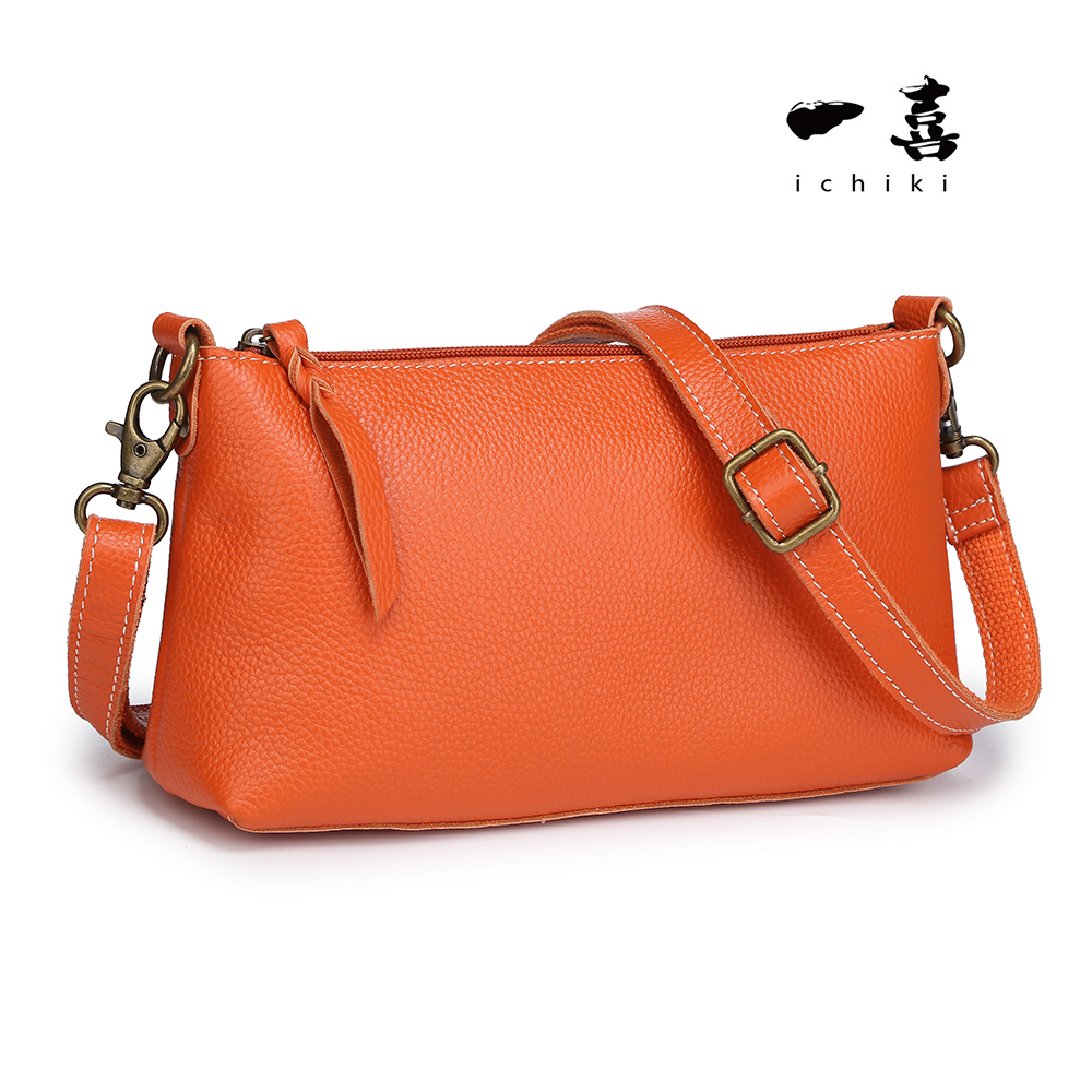 - ショルダーバッグ 斜めがけ レディースバッグ ハンドメイド 通勤 本革 ポシェット オレンジ G08