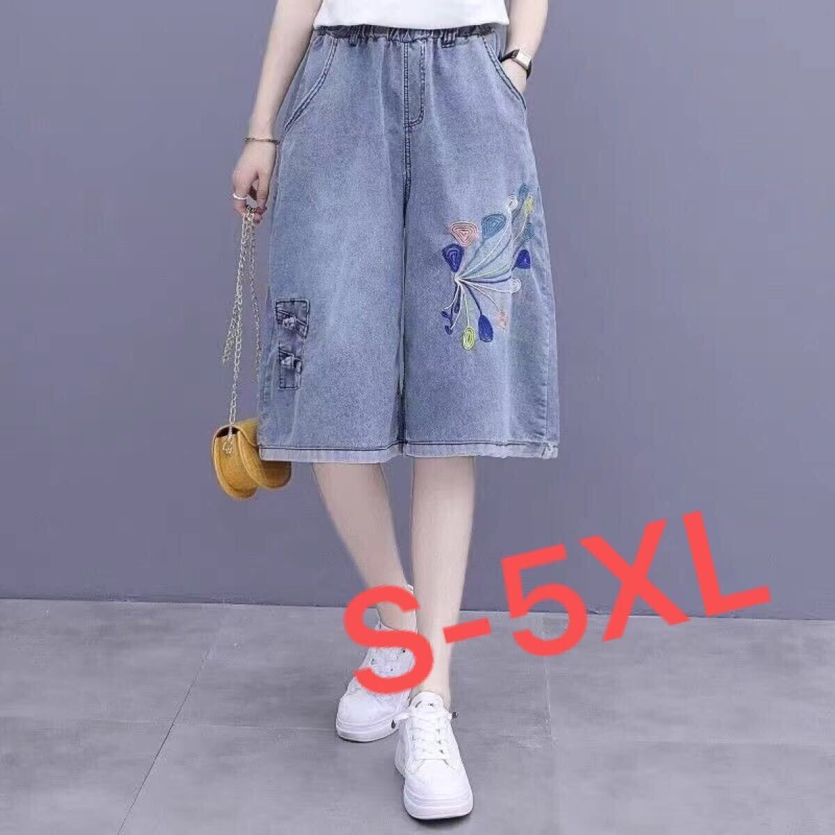 - ショートパンツ デニムパンツ ハイウエストショートパンツ レディース ショーパン デニムショートパンツ 刺しゆう おしゃれLPGA058(S-5XL)
