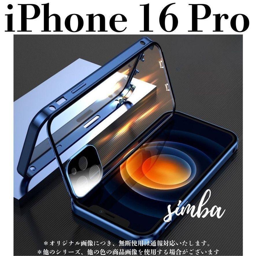 > iPhone 16 Pro ケース 両面ガラス フルカバー マグネット ブルー
