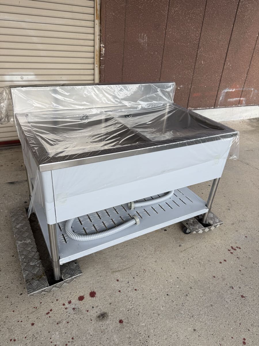 - 未使用 業務用 タニコー ステンレス 2槽シンク 流し台 ステンレスシンク 大型シンク 厨房シンク 1200×750×800 TX-2S-120A ①