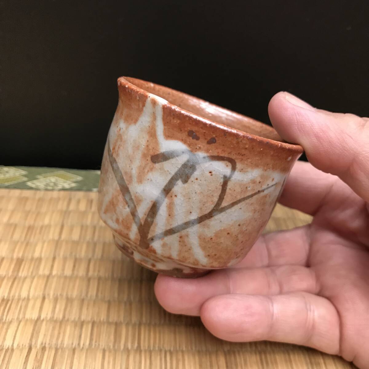 > ねずみ志野草花文のぐい呑み(ロ)魯山人銘印?酒器 猪口 小鉢 盃 杯 珍味入れ(R70815_B)