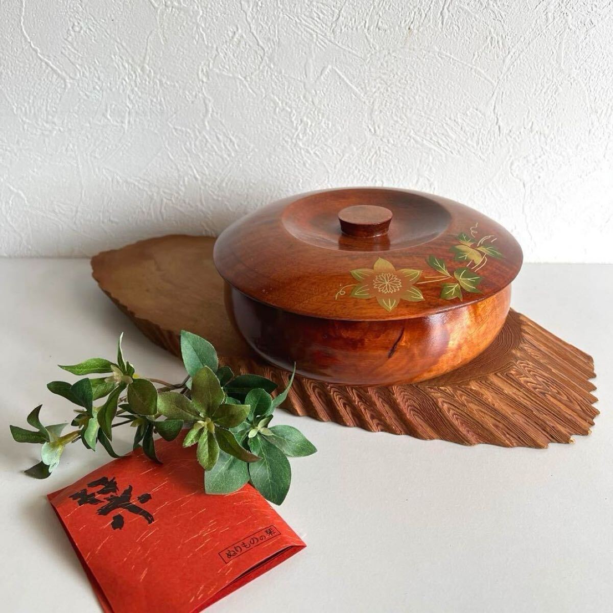 > wasabi k793 漆塗り 菓子器 テッセン(鉄線)温かみのある木の器 漆器 漆芸 工芸品 コロンとした丸みのあるフォルムが愛らしい逸品