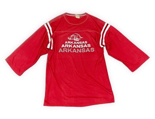 > 70's 80’s 米国製 チョークライン Chalk Line ビンテージ カレッジ フットボール Tシャツ 綿100 アーカンソー大学 レッド XL [la-1392]