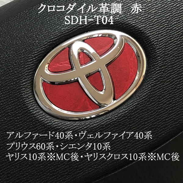 - トヨタ ステアリングエンブレム クロコダイル革調 赤 SDH-T04 ハンドル用シート ステッカー 取付け簡単 TOYOTA